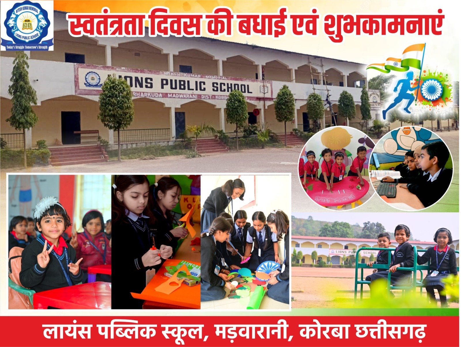 एनकेएम लायंस पब्लिक स्कूल खरहरकुड़ा में स्वतंत्रता दिवस हर्षोल्लासपूर्वक मनाया गया