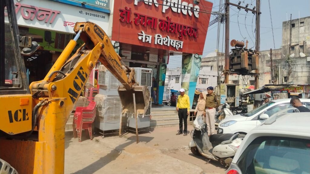 अतिक्रमित सामान को नगर पालिका के वाहन में जप्त कर ले जाया गया। एएसआई मनोज और राठौर ने बताया कि सुबह साढ़े ग्यारह बजे से नगर पालिका अमले के साथ कार्रवाई शुरु की गई।जो करीब साढ़े तीन बजे तक चली। इस दौरान टीपी नगर से सुनालिया चौक तक नगर पालिका निगम की टीम के साथ दुकानों के बाहर सामान रखकर अतिक्रमण करने वाले दुकानदारों का सामान जप्त किया गया। उन्होंने बताया कि करीब 50 से अधिक दुकानों संचालकों ने अतिक्रमण कर सामान बाहर तक रख रखा था।जिसे हटाया गया।