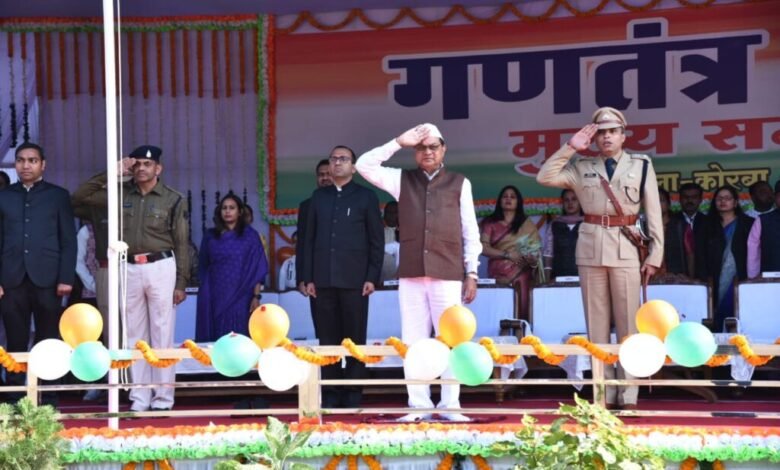 कोरबा,गणतंत्र दिवस 26 जनवरी 2024 कोरबा जिले में धूमधाम से मनाया गया। जिला मुख्यालय में सीएसईबी कोरबा पूर्व के फुटबॉल मैदान में आयोजित मुख्य समारोह में वाणिज्य, उद्योग एवं श्रम मंत्री लखन लाल देवांगन ने राष्ट्रीय ध्वज तिरंगा फहरा कर परेड की सलामी ली।