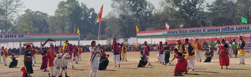 परेड का मार्च पास्ट, परेड की समीक्षा एवं सलामी बाद मुख्य अतिथि द्वारा मुख्यमंत्री के संदेश का वाचन कर राज्य सरकार की योजनाओं की जानकारी देते हुए भावी योजनाओं के बारे में बताया गया व प्रधानमंत्री की जनकल्याणकारी कार्यों का भी उल्लेख किया गया जिसमें पीएम जनमन के 11 लक्ष्यों को बताया गया।