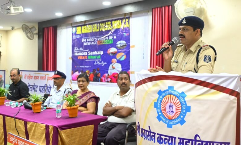 कोरबा ,यातायात नियमों के प्रति लोगो को जागरूक करने के लिए अतिरिक्त पुलिस अधीक्षक नेहा वर्मा के मार्गदर्शन में विद्यालय/महाविद्यालय के छात्रों को यातयात के बारे में जानकारी दी जा रही हैं।