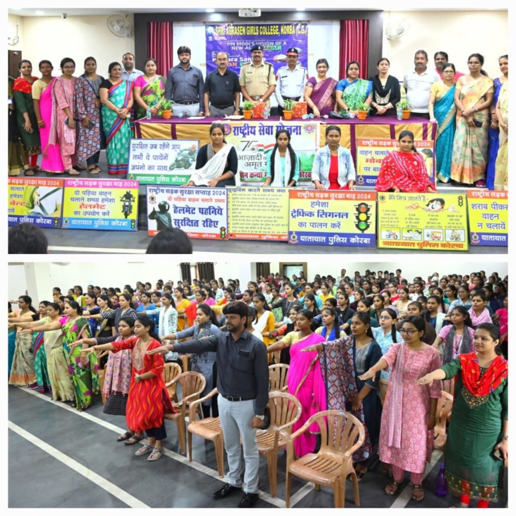 इस कड़ी में यातायात विभाग द्वारा अग्रसेन कन्या महाविद्यालय में राष्ट्रीय सेवा योजना कार्यक्रम के तहत छात्राओं को जागरूक करने एक कार्यशाला का आयोजन किया। जिसमे एएसआई मनोज राठौर ने कहा कि सड़क दुर्घटना रोकने में युवाओ की भूमिका अहम है। उन्होंने छात्राओं से जिम्मेदार बनने और समाज में सड़क सुरक्षा के प्रति जागरूकता लाने का भी आह्वान किया।