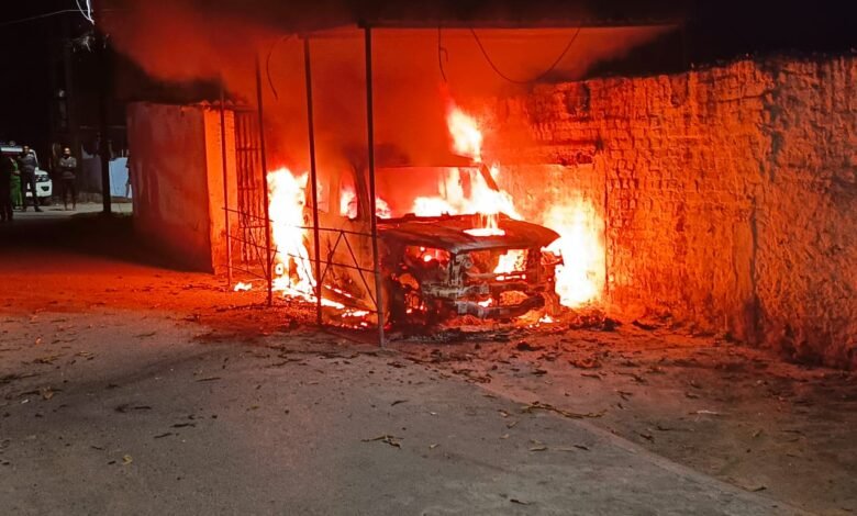 असामाजिक तत्वों ने स्कॉर्पियो को किया आग के हवाले , देखिए वीडियो