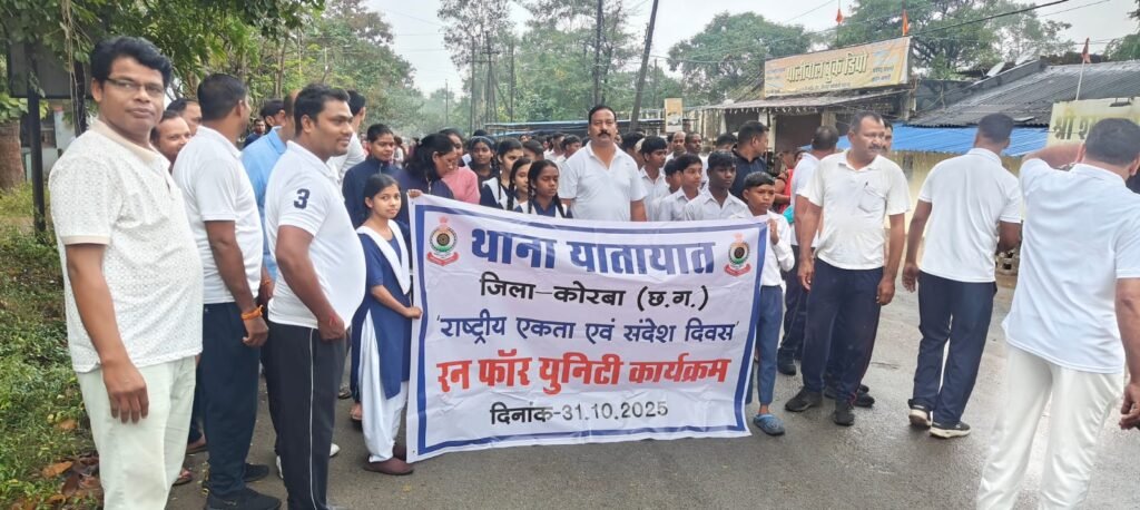 कोरबा,भारत के लौह पुरुष सरदार वल्लभभाई पटेल की 150वीं जयंती के अवसर पर सर्वमंगला चौकी, यातायात थाना और सिटी कोतवाली पुलिस द्वारा शुक्रवार को ‘रन फॉर यूनिटी’ कार्यक्रम का आयोजन किया गया। दौड़ प्रतियोगिता के अलावा विभिन्न कार्यक्रम आयोजित किया गया , जिसमें बड़ी संख्या में स्कूली छात्र-छात्राओं ने भाग लेकर एकता और राष्ट्रीय समरसता का संदेश दिया।