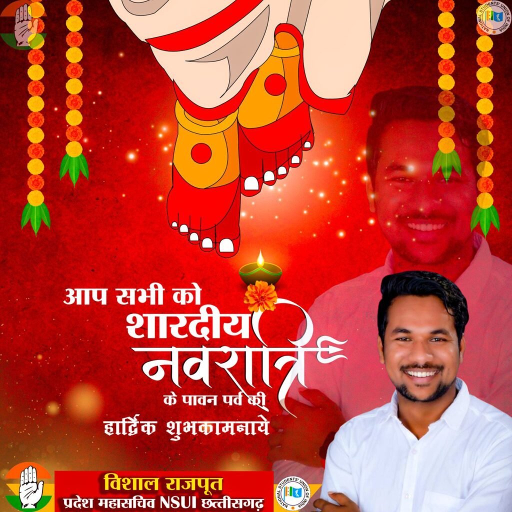 कोरबा ,शारदीय नवरात्रि महापर्व के अवसर पर एनएसयूआई छत्तीसगढ़ के प्रदेश महासचिव विशाल राजपूत ने प्रदेशवासियों को हार्दिक बधाई एवं शुभकामनाएं दी हैं।