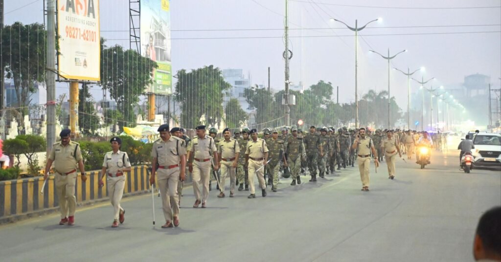 कलेक्टर व पुलिस अधीक्षक की अगुवाई में शहर में निकाला गया फ्लैग मार्च