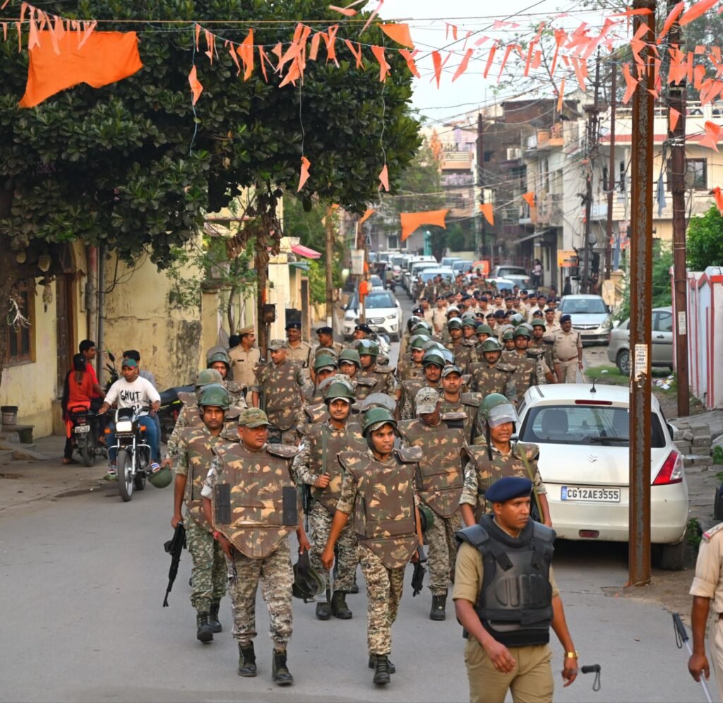 गुंडे तथा असामाजिक तत्वों को हतोत्साहित और जन सामान्य में सुरक्षा का बोध कराने प्रशासन व पुलिस की संयुक्त टीम द्वारा थाना कोतवाली से लेकर शहर के मुख्य चौक-चौराहे से होते हुए कोसाबाड़ी तक फ्लैग मार्च निकाला गया। जिसमें जिला प्रशासन और पुलिस के तरफ से कुल 200 से अधिक अधिकारी एवं कर्मचारीयों ने हिस्सा लिया।