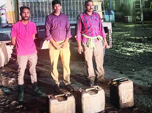 डीजल चोरी के आरोप में पकड़ा तीन कर्मी को