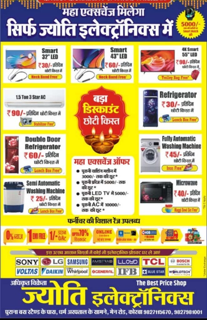 कोरबा , दीपोत्सव को लेकर हर घर में तैयारी जोरों पर है। 5 दिवसीय दिपावली की शुरुआत 18 अक्टूबर शनिवार को धनतेरस पर्व से होकर भाई दूज तक रहेगी।