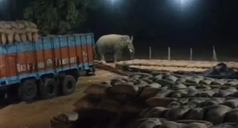 धान खरीदी केंद्र चचिया में दिखा हाथी, कर्मचारी दहशत में