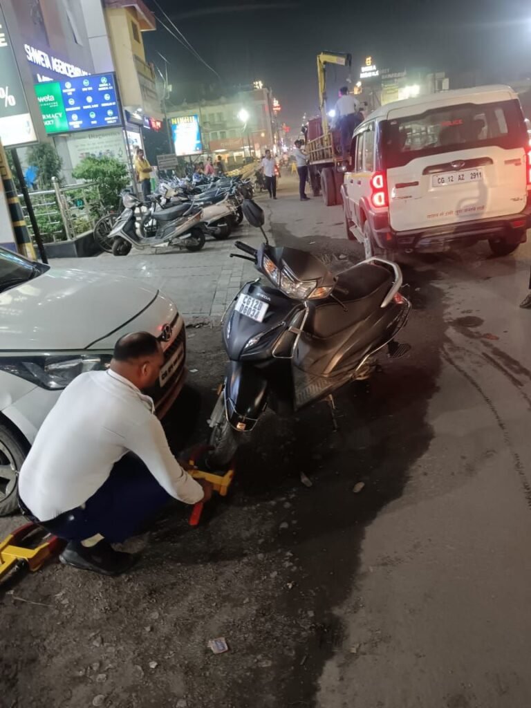 यातायात पुलिस में पदस्थ ASI मनोज राठौर के नेतृत्व में श्वेता नर्सिंग होम पावर हाउस रोड और टीपी नगर चौक पर बेतरतीब ढंग से वाहन खड़ा करने वाले चालकों के खिलाफ कार्रवाई की गई। इससे पहले भी चालकों को नो-पार्किंग में वाहन न खड़ा करने की हिदायत दी गई थी।