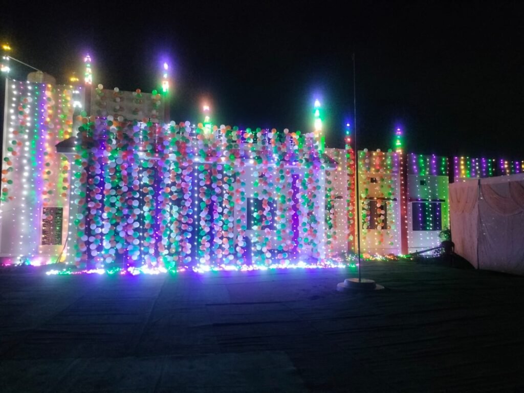 रंगीन लाइटो के लड़ी और गुब्बारों  से सजाया गया सर्वमंगला चौकी, देखिए वीडियो