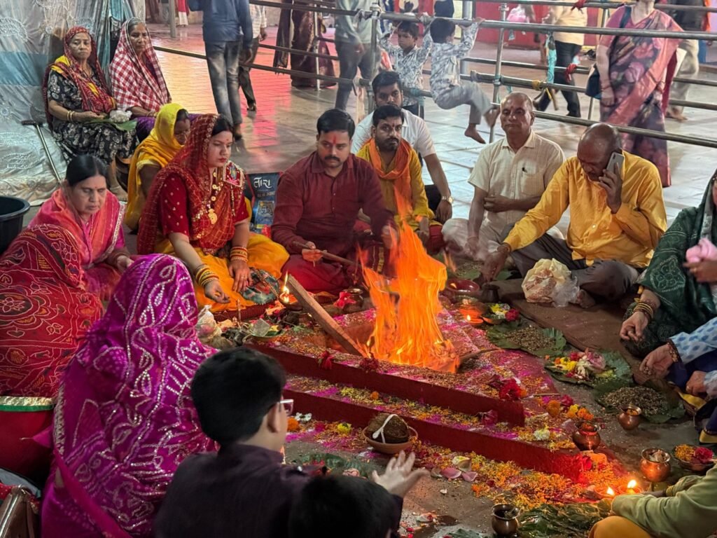 शहर के प्रसिद्ध मां सर्वमंगला मंदिर में  वैदिक मंत्रोच्चार के साथ हुआ हवन कार्यक्रम, कन्या भोज के साथ सैकड़ो श्रद्धालुओं ने किया प्रसाद ग्रहण