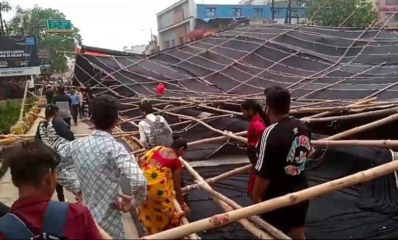 हिंदू नव वर्ष के लिए लगाया गया पांडाल आंधी तूफान से गिरा, राहगीर बाल – बाल बचे , देखिए वीडियो