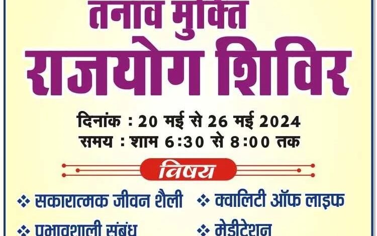 20 मई से 7 दिवसीय तनाव मुक्ति शिविर का आयोजन
