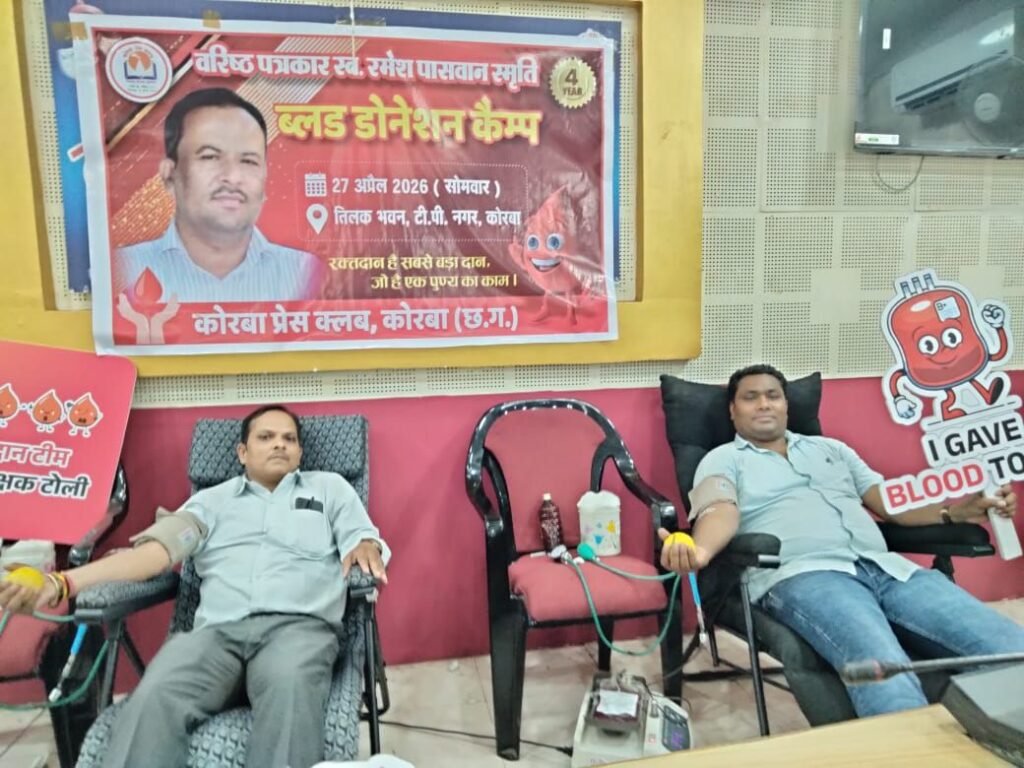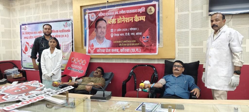 कोरबा, सेवा ही परमो धर्म के ध्येय वाक्य को चरितार्थ करते हुए कोरबा प्रेस क्लब द्वारा आज तिलक भवन, टी.पी. नगर में भव्य रक्तदान एवं निःशुल्क स्वास्थ्य परीक्षण शिविर का सफल आयोजन किया गया। यह आयोजन दिवंगत वरिष्ठ पत्रकार स्वर्गीय विजय सिंह और स्वर्गीय रमेश पासवान की पावन स्मृति में किया गया, जिसमें शहर के गणमान्य नागरिकों, पत्रकारों और उनके परिजनों ने बढ़-चढ़कर हिस्सा लिया। कार्यक्रम में प्रमुख अतिथियों के रूप में सीएमएचओ डॉ. एस. एन. केसरी, रेडक्रॉस सोसाइटी के चेयरमैन रामसिंह अग्रवाल, वाइस चेयरमैन राजेन्द्र तिवारी, चैंबर ऑफ कामर्स के अध्यक्ष योगेश जैन, महिला नेत्री अंजना सिंह, दीपक सिंह, एमजेएम हॉस्पिटल के संचालक डॉ. प्रिंस जैन, स्व. विजय सिंह जी की धर्मपत्नी श्रीमती मीना सिंह, उनके पुत्र सहायक जिला लोक अभियोजन अधिकारी अनिल सिंह, सुनील सिंह, स्व. रमेश पासवान जी के छोटे भाई रामप्रसाद पासवान व उनके पुत्र अनुप पासवान शामिल हुए। सभी अतिथियों ने दीप प्रज्वलित कर कार्यक्रम का शुभारंभ किया। कार्यक्रम के मुख्य अतिथि रामसिंह अग्रवाल ने कोरबा प्रेस क्लब के इस कार्यक्रम की सराहना की, उन्होंने कहा कि पत्रकारों की स्मृति में इस तरह का सेवा कार्य समाज के लिए एक उत्कृष्ट उदाहरण है। साथ ही स्व. विजय सिंह व स्व. रमेश पासवान के पुराने दिनों के कार्यो को याद किया। इसी तरह सीएमएचओ डॉ. केसरी ने कहा कि कोरबा प्रेस क्लब कई वर्षो से जन सरोकार के तहत रक्तदान शिविर व स्वास्थ्य परीक्षण शिविर का आयोजन करता आ रहा है। ऐसे आयोजन होना चाहिए इससे सीधे जनता को लाभ मिलता है। निश्चित तौर पर कोरबा प्रेस क्लब बधाई का पात्र है।